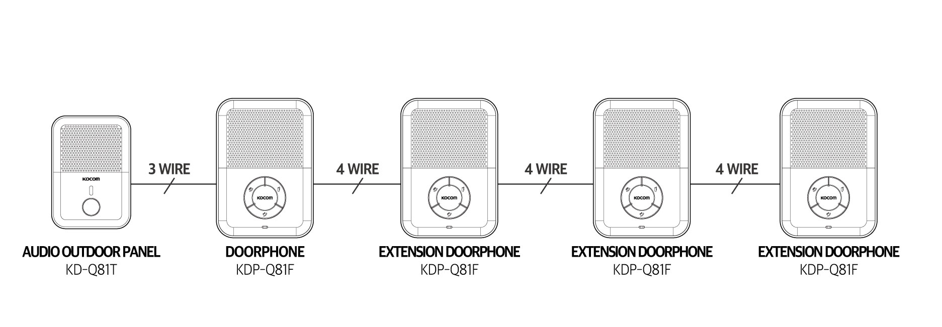 | Power source | KDP-Q81F : 100-240V~,50/60Hz KD-Q81T : DC 12±2V (Supply from doorphone) |